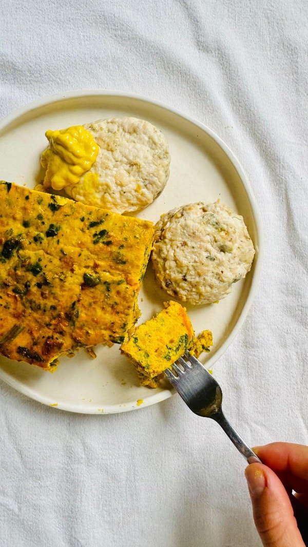 Zapallo, zanahoria, espinacas, cebollas, huevo, sal y condimentos varios